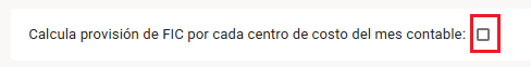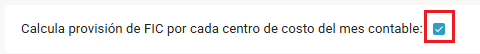Se incorporó en las configuraciones del sistema la casilla “Calcula provisión de FIC por cada centro de costo del mes contable”, que te permite definir y controlar la forma en que se realiza el cálculo de la provisión del FIC.