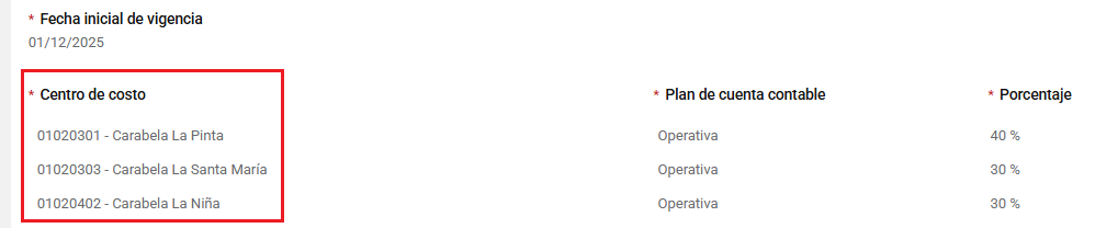 - Activada: cuando se marca la casilla se habilita la nueva distribución detallada por centro de costo.