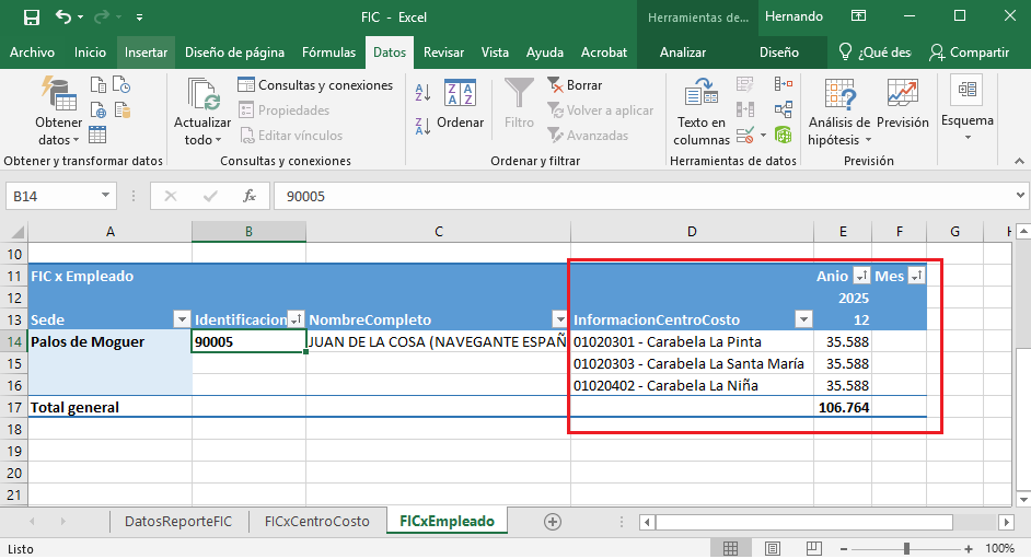 En el reporte de provisiones del FIC podrás consultar la información necesaria para el reporte, desagregada por centro de costo y por empleado.