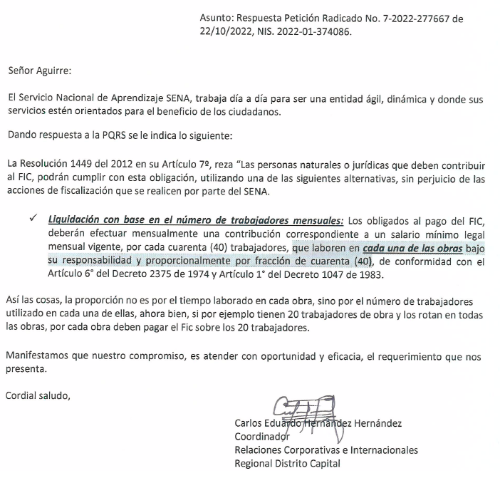 Esta segunda configuración se realiza con base en la interpretación del concepto NIS. 2022-01-374086, donde el SENA aclara un punto clave del artículo 7 de la Resolución 1449 de 2012: