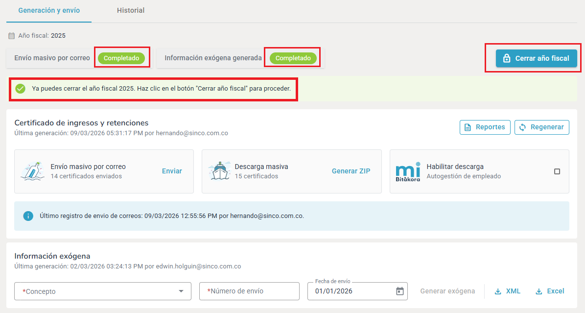 ✔ Cierre de año fiscal con información adicional, que te guía para finalizar correctamente el proceso de CIR y la información exógena.