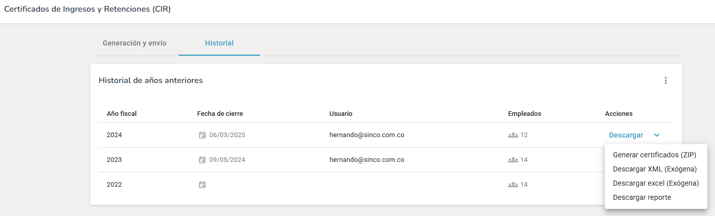 Además, podrás descargar los certificados, el reporte correspondiente y los archivos de la información exógena en formato XML y Excel.