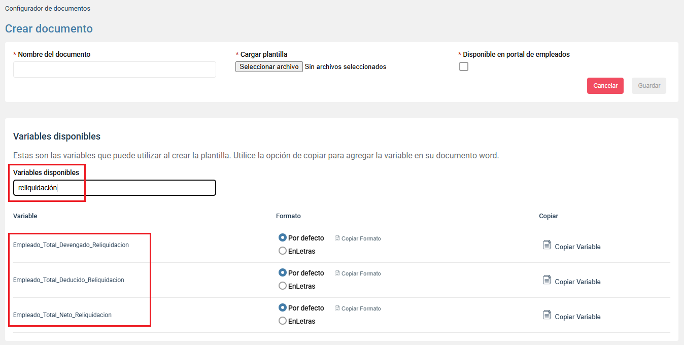 Podrás incluir las nuevas variables al crear un nuevo documento laboral del empleado.