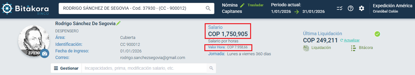 El valor del salario mensual y el valor hora, los puedes observar en el Administrador de empleados de Bitákora.